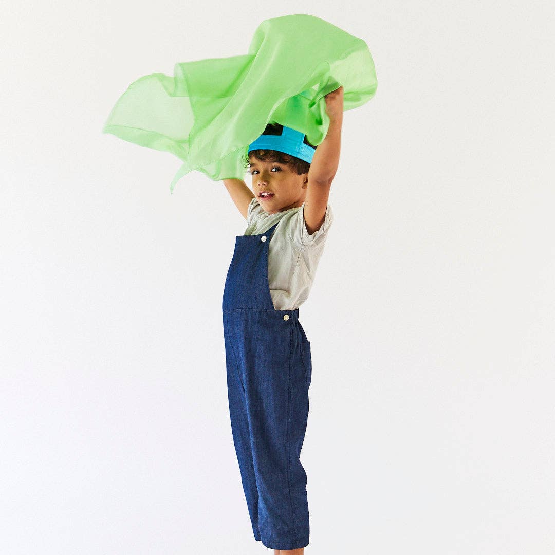Green Grass Playsilks are painted by hand on 35 x 35-inch squares made from gorgeous, lightweight (5 momme) 100% pure mulberry silk.Inspired by fresh spring grass, this soft green hue brings a gentle sense of nature and quiet magic into play.