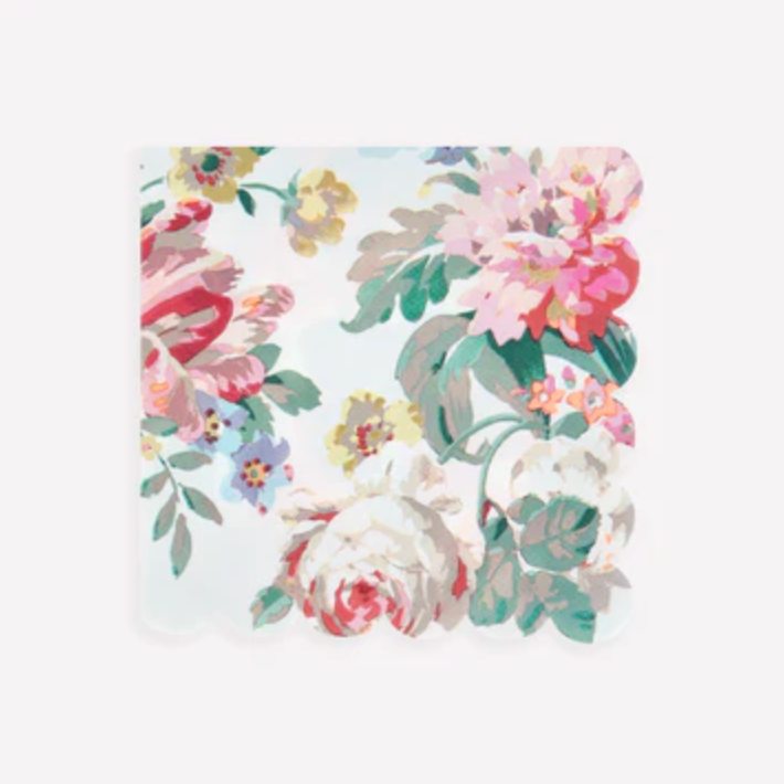 Celebrate in style with this fresh take on vintage charm. These large paper napkins feature vibrant blooms inspired by classic French wallpaper, bursting in bright colors with playful neon pops. A delicate scalloped edge adds a graceful finish, perfect for complementing grown-up gatherings. Ideal for garden parties, spring soirées, high teas, bridal showers or anniversaries, they'll bring a joyful touch to every celebration.