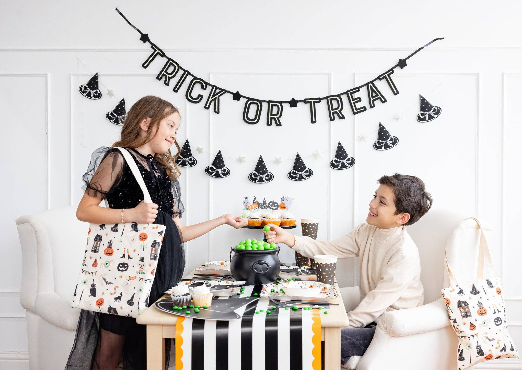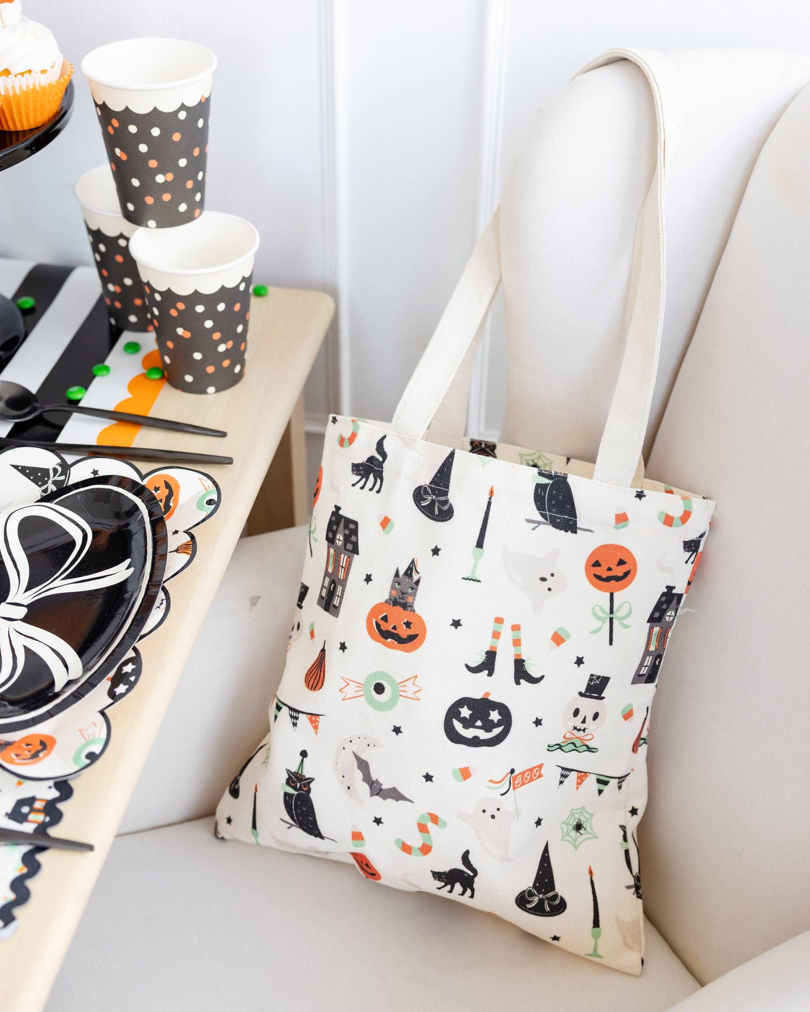 Get ready for spooky season with our Tricks & Treats Tote Bag! Perfect for Halloween adventures, this canvas tote is sturdy enough for candy collecting or haunted party hopping. Show off your festive spirit while keeping all your goodies in one place. Grab yours and make this Halloween the most fun yet!
