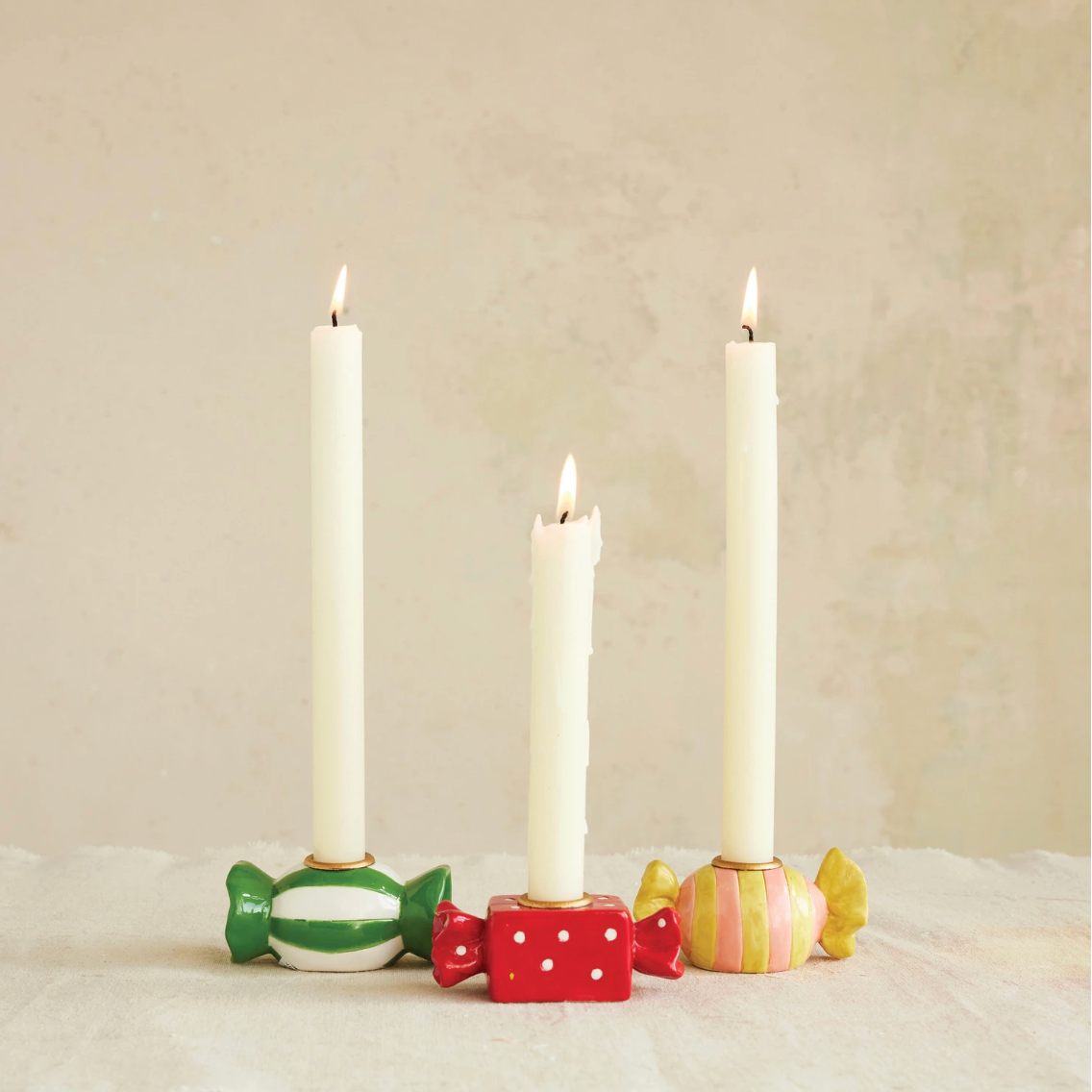 You'll love these fun candy taper candle holders...perfect for a sweet Christmas tablescape and cute holiday decor!