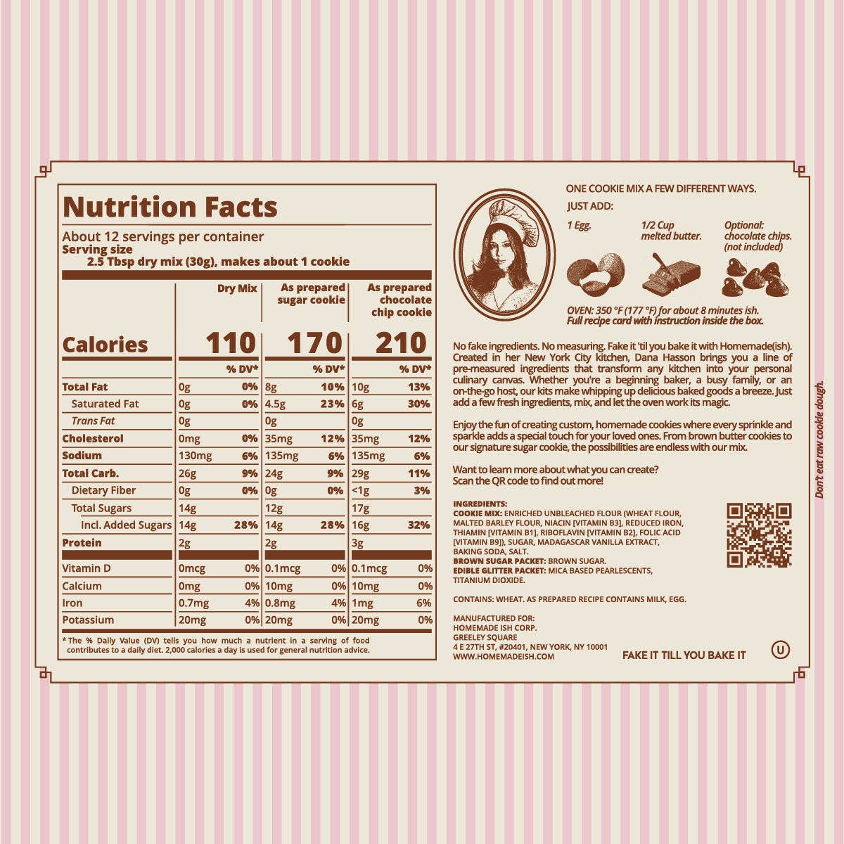 No fake ingredients. No measuring. Fake it ’till you bake it with Homemade ish. Created in her New York City kitchen, Dana Hasson brings you a line of pre-measured ingredients that transform any kitchen into your personal culinary canvas. Whether you’re a beginning baker, a busy family, or an on-the-go host, our kits make whipping up delicious baked goods a breeze. Just add a few fresh ingredients, mix, and let the oven work its magic. Enjoy the fun of creating custom, homemade cookies where every sprinkle and sparkle adds a special touch for your loved ones. Makes a great gift!