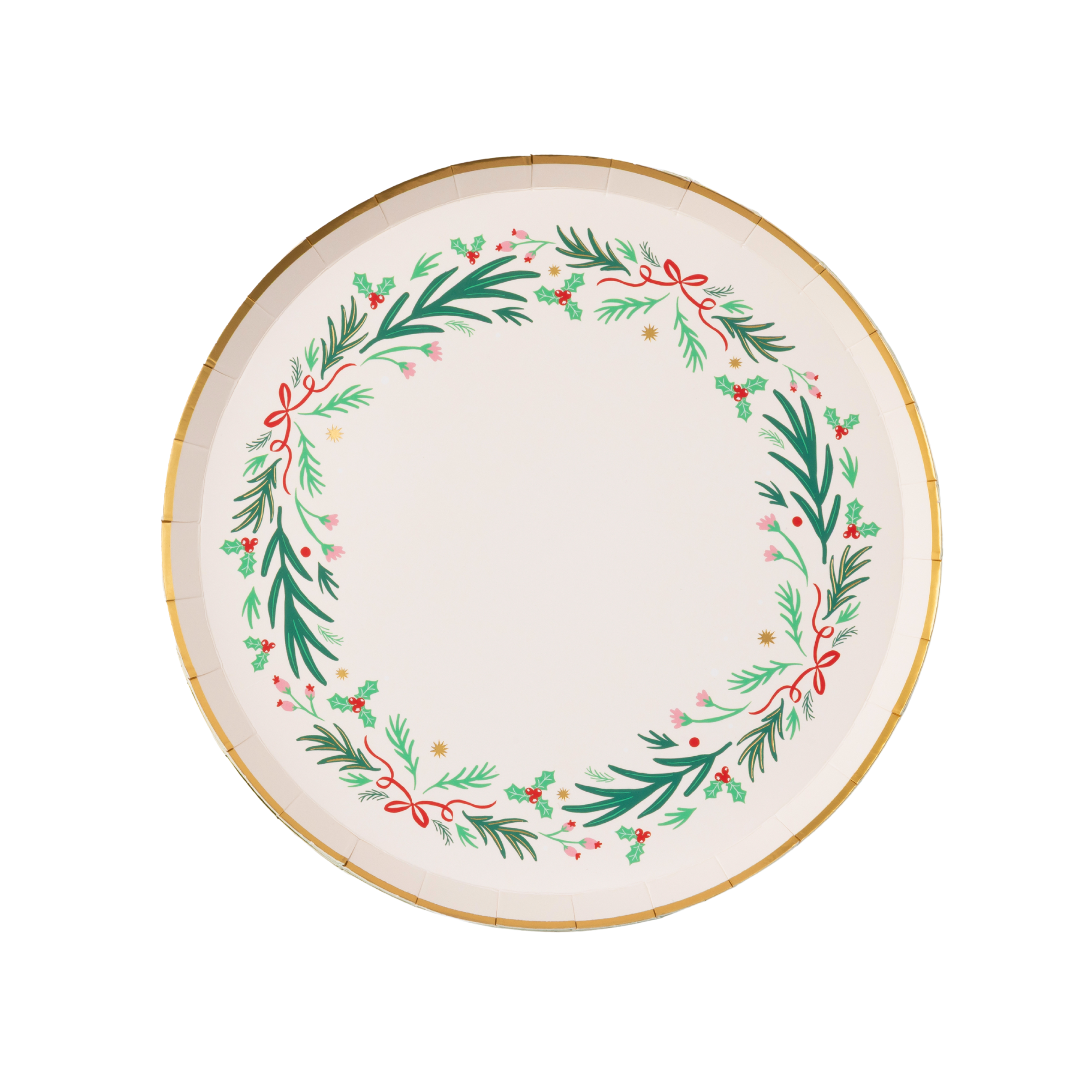 Enhance your holiday table with our Christmas Wreath Small Plates! These elegant dessert plates feature a creamy base, gold foil rim, and festive greenery with holly and red bows, perfect for serving appetizers or desserts. A must-have for holiday collections!