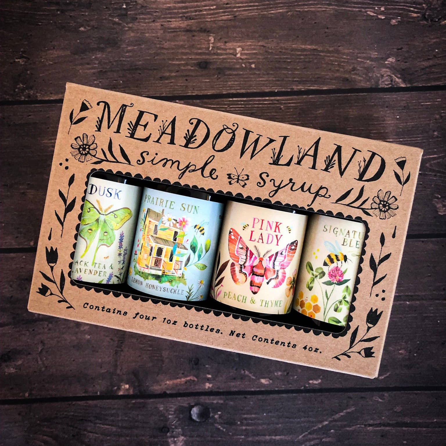 A whimsical collection of 4 of our favorite simple syrups! Perfect in your cocktails, lemonade, sparkling water, or even baked goods! :) In this kit, you'll receive four-1 oz bottles of the following: