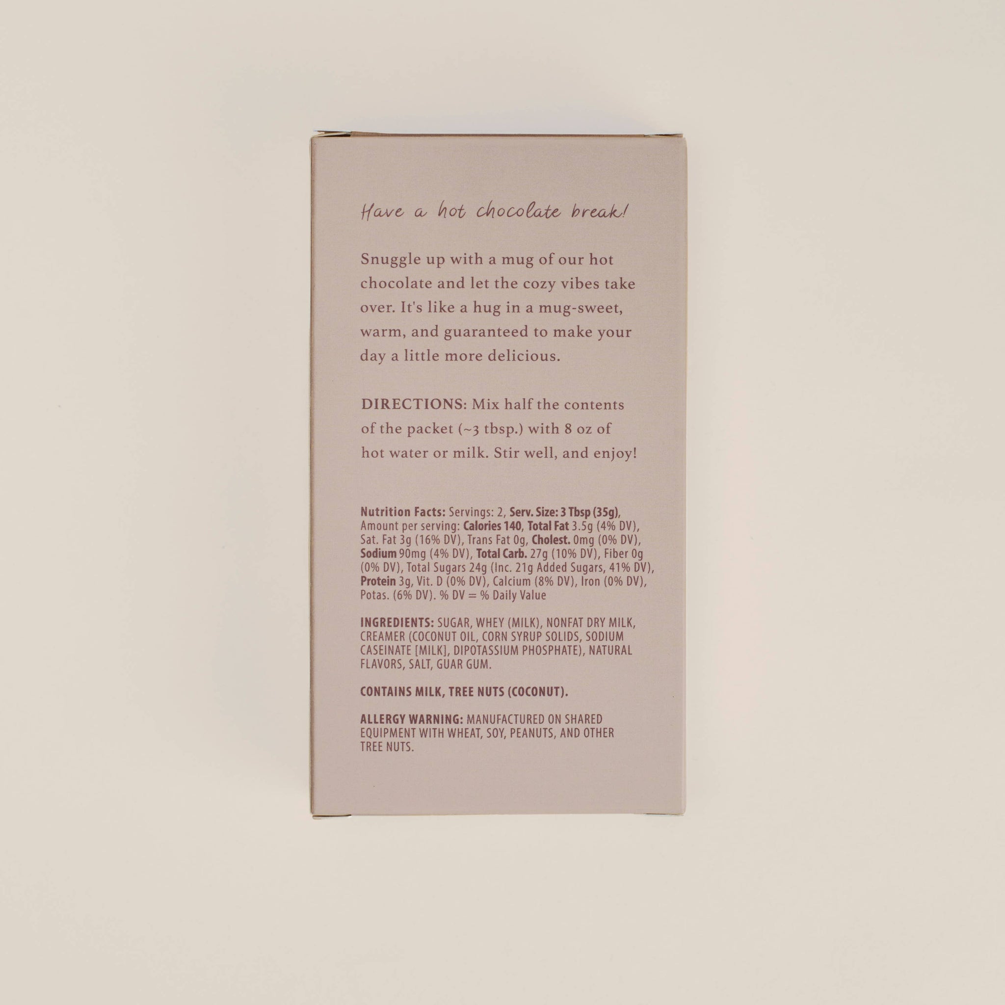White Hot Chocolate – Like a Warm, Sweet Cloud in a Cup Ever wish you could drink a marshmallow? This White Hot Chocolate is the next best thing. Smooth, creamy, and just the right amount of sweet, it’s a dreamy treat that works year-round—whether you’re curled up with a book or treating yourself on a random Tuesday (because why not?). The upscale, neutral packaging makes it a seamless addition to any gift set or self-care stash. Perfect for Easter, Mother’s Day, bridal showers, birthdays, and thank-you gifts, it’s a must-have for anyone who loves a little luxury in their mug. Just add hot water or milk, and prepare for bliss. Size: 5.5x3x1 Weight: 2.5 oz