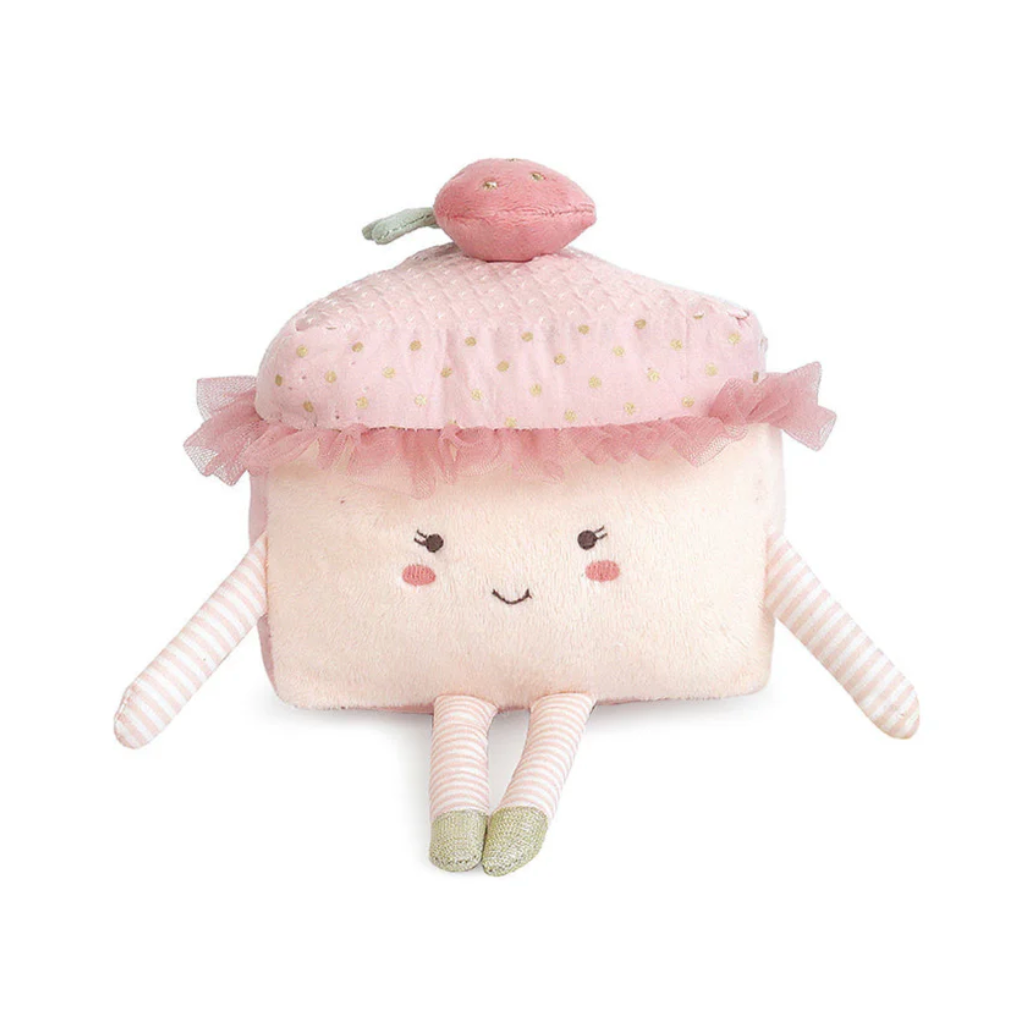 Say hello to the sweetest treat in town, a plush Frenchie Cake Slice that's full of personality and charm! With her soft pink frosting, topped with a dainty strawberry, and a tutu-like frill of tulle, this cake slice is ready to twirl her way into your heart. Her striped arms and legs add extra sweetness to her already irresistible design, while her smile and rosy cheeks are sure to make you grin. Whether she's sitting pretty on your shelf or joining in on imaginative playtime, this plush cake slice is a delightful companion for anyone with a taste for fun!