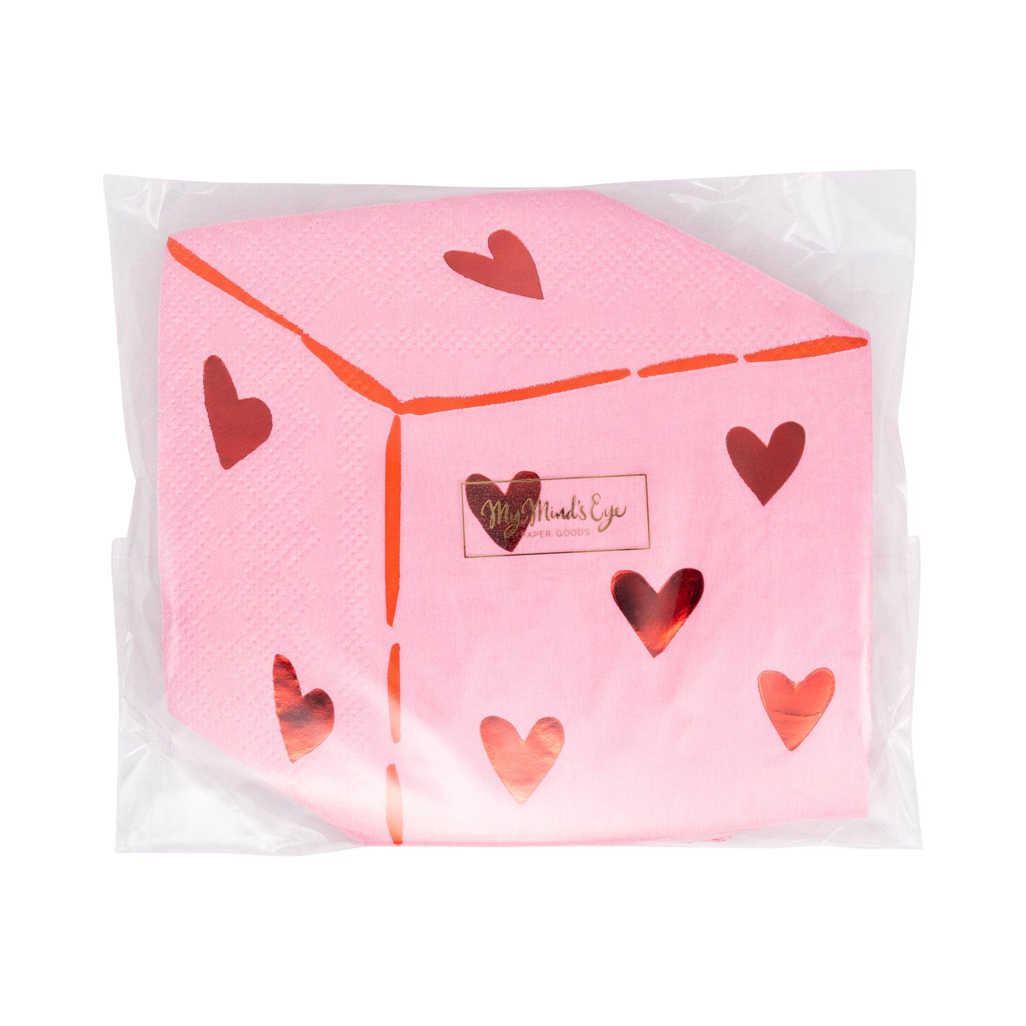 Roll the dice on romance with these charming dice-shaped cocktail napkins! Perfect for engagement parties, bridal showers, or any celebration of love, these whimsical napkins add a playful touch to your tablescape. Each napkin features a delightful dice design paired with romantic hearts, making them ideal conversation starters and memorable keepsakes.