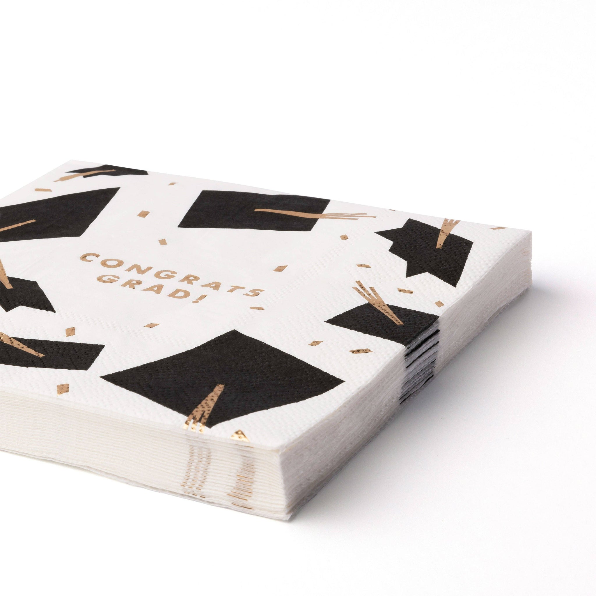 These Tassel Lunch Napkins feature a stylish design with black graduation caps highlighted by shimmering gold foil tassels. Celebrating graduates of any age, the cheerful “Congrats Grad!” message is sure to delight. Durable and lunch-sized, these napkins are perfect for graduation parties, adding a chic and contemporary touch to your table or buffet. Enhance your celebration by pairing them with Tassel Cups and Graduation Cap Snack Plates for a complete, impressive place setting.
