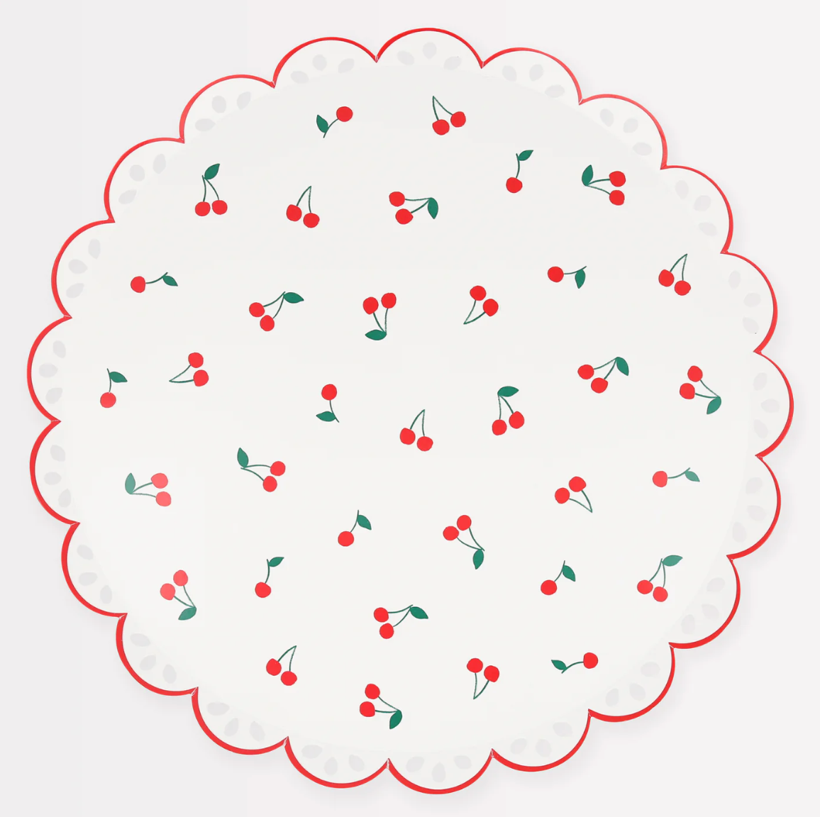 Summery and fun...cherries are the must-have design to give a fresh look to your parties. These pretty patterned paper plates have an eyelet embroidery feel, which is very of the moment, and a red scalloped edge for a stylish effect. These dinner plates are ideal for table layering for garden parties, picnics or whenever you want a vibrant touch.