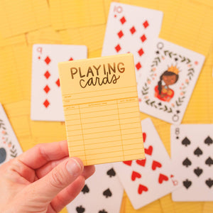 Elevate your game nights with our Yellow Library Card Deck of Playing Cards! Featuring a delightful yellow library card design, this standard deck brings a charming touch to every card game.